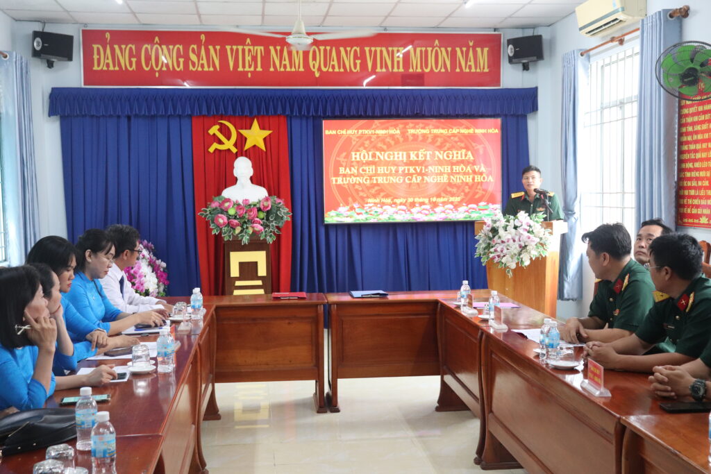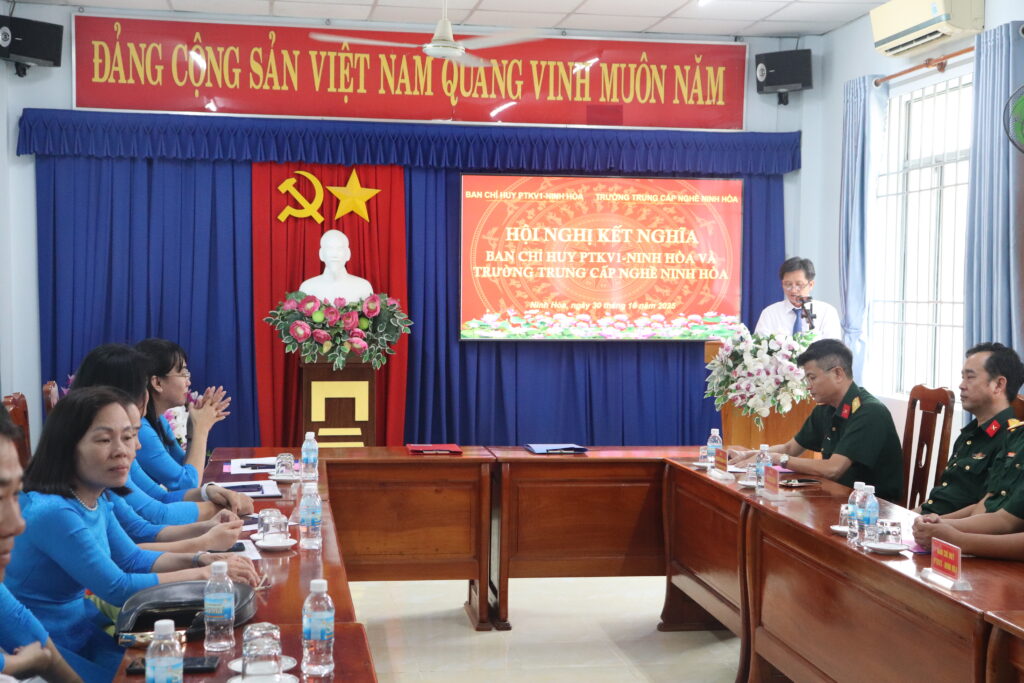 Chiều ngày 30/10/2025, tại Trường Trung cấp nghề Ninh Hòa diễn ra Hội nghị kết nghĩa giữa Ban Chỉ huy phòng thủ khu vực 1 – Ninh Hòa và Trường Trung cấp nghề Ninh Hòa.