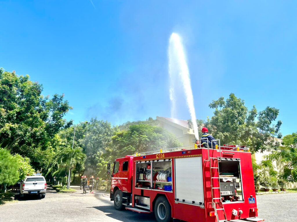 Thực hiện Kế hoạch số 1648/KH-PCCC(KV5) ngày 01/10/2025 của Phòng cảnh sát Phòng cháy, chữa cháy và cứu nạn, cứu hộ – Công an tỉnh Khánh Hòa về việc thực tập phương án chữa cháy, cứu nạn, cứu hộ tại Trường Trung cấp nghề Ninh Hòa.
